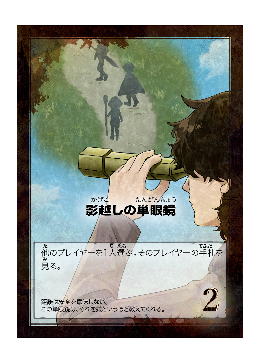 カード詳細:影越しの単眼鏡 2026 4/28 カードリスト 製品情報 2026年4月28日 カード名 影越しの単眼鏡(かげごしのたんがんきょう) 分類 財宝(魔道具) 得点 2点 カード効果 他のプレイヤーを1人選ぶ。そのプレイヤーの手札を見る。 フレイバーテキスト 距離は安全を意味しない。この単眼鏡は、それを嫌というほど教えてくれる。 カードリスト 製品情報 カードリスト 影越しの単眼鏡 財宝 魔道具 よかったらシェアしてね! URLをコピーしました! URLをコピーしました! カード詳細:時呼びのベル カード詳細:円環の呪宝 関連記事 カード詳細:双光陽影のツインストーン カード詳細:混沌変転のトラペゾヘドロン カード詳細:不滅不壊のアダマンタイト カード詳細:双翼流転のアレキサンドライト カード詳細:怒血龍眼のスピネル カード詳細:戦神のヘマタイト カード詳細:恋心のガーネット カード詳細:魔術のアメジスト